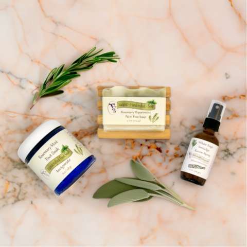 Uplift-Rosemary Peppermint- Foot Soak, Soap, White Sage Spray
