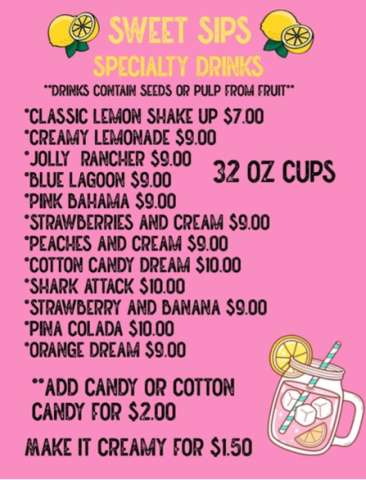 Menu For Specialty Lemonades