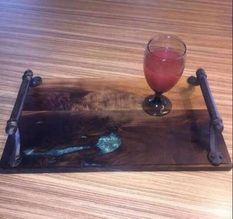 Walnut W/Resin Serving Tray W/Iron Handles