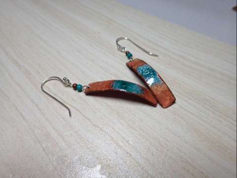 Hammered Copper and Vitreous Glass Enamel Earrings