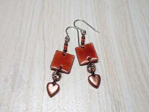 Hammered Copper and Vitreous Enamel Heart Earrings